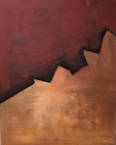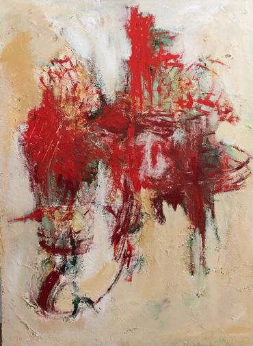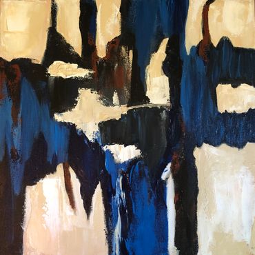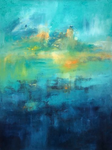 A sound, scent or memory can provide the inspiration. Even a shadow on a wall or a uniquely shaped building can pave the way into an abstract painting. Once there, I can get lost while immersed in the work, searching for a way out until that “ah ha” moment hits.